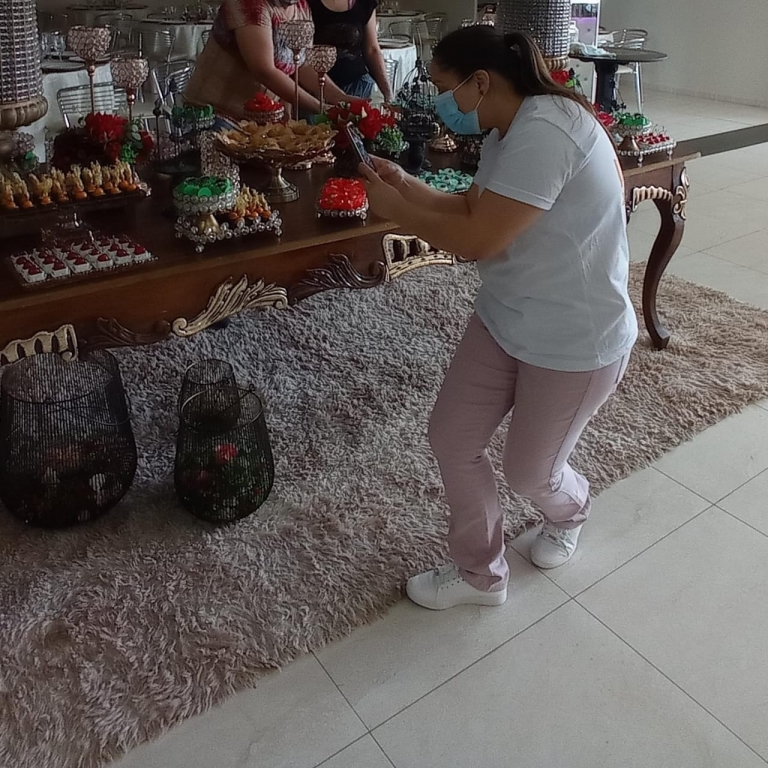 Em uma ligação de dentro a casa de festas consegui auxiliar na compra das forminhas para combinar com a decoração que a noiva havia escolhido para seu grande dia, santa tecnologia nessas horas, que conseguimos um resultado bem positivo no trabalho final. Dias antes havia mostrado para ela o papel nacarado no qual faz muita diferença nas fotos que vão para o álbum oficial do casal, para uma mesa de doces a altura tudo deve ser pensado nos mínimos detalhes, vai a noiva novamente correr atrás de tapetinho para doces, em plena pandemia 2020.