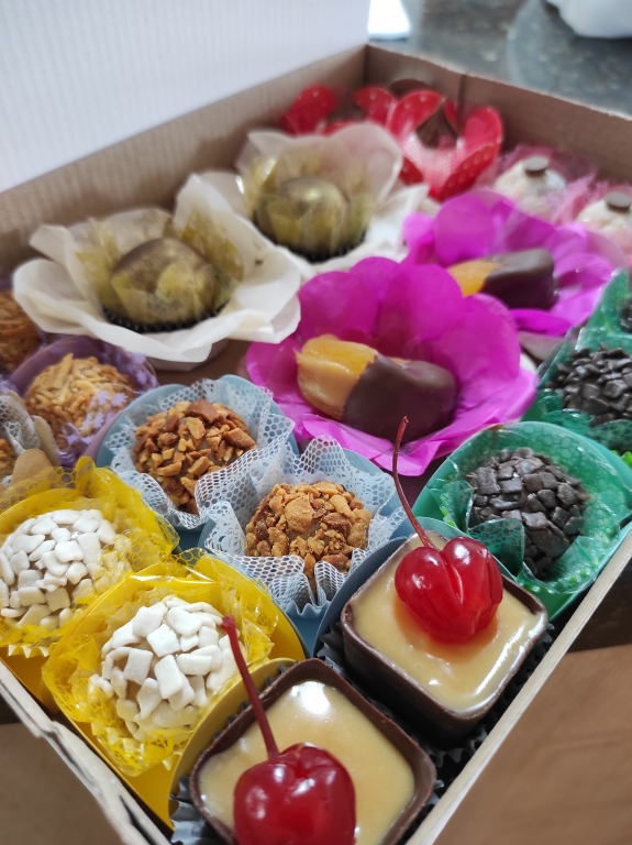 Dias depois recebemos o comunicado oficial dos contratantes que havíamos sidos escolhidos para fazer a mesa do casal, fechamos o contrato com os noivos, e fomos muito elogiados com nosso profissionalismo o que já seria certeza de um sucesso de mesa no casamento deles, já que nossa caixinha degustação contem uma mini mesa de eventos. Até que o dia chegasse, acompanhamos e orientamos nas questões de forminhas, peças de doces e tamanho de mesa, junto com a noiva e a decoradora Taina Grolli.